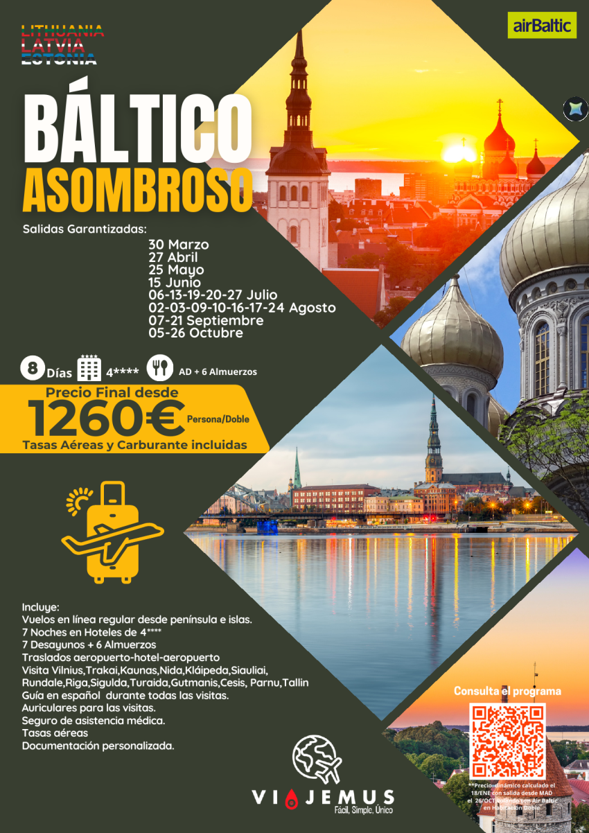 Báltico Asombroso, visitando Estonia, Letonia y Lituania, 8 días, Hoteles 4*, AD+6 Almuerzos ...